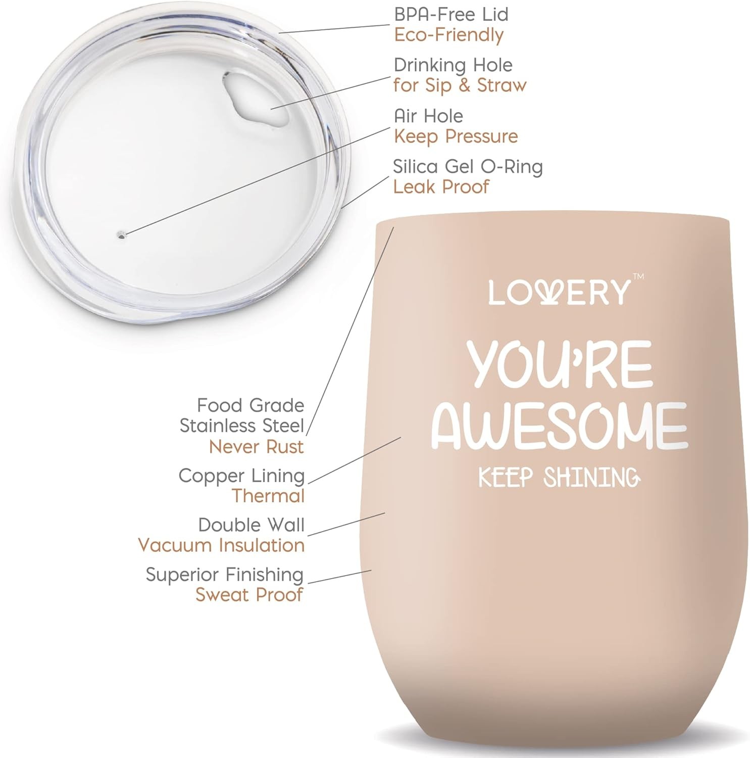 • ALL OCCASION GIFT: This Gift Box comes with 12oz Insulated Stainless Steel Tumbler with the words "You’re Awesome, Keep Shining" permanently laser engraved, Stainless Steel Straw and Spoon, 150g Lavender Handmade Soap, 240ml White Tea Body Butter, 240ml Coconut Bubble Bath, 150g Cherry Blossom Bath Bomb, Stainless Steel Car Keychain with a Friendship Quote and a Personalized “Best Friends Forever” Greeting Card for you to write that Heartfelt Message.