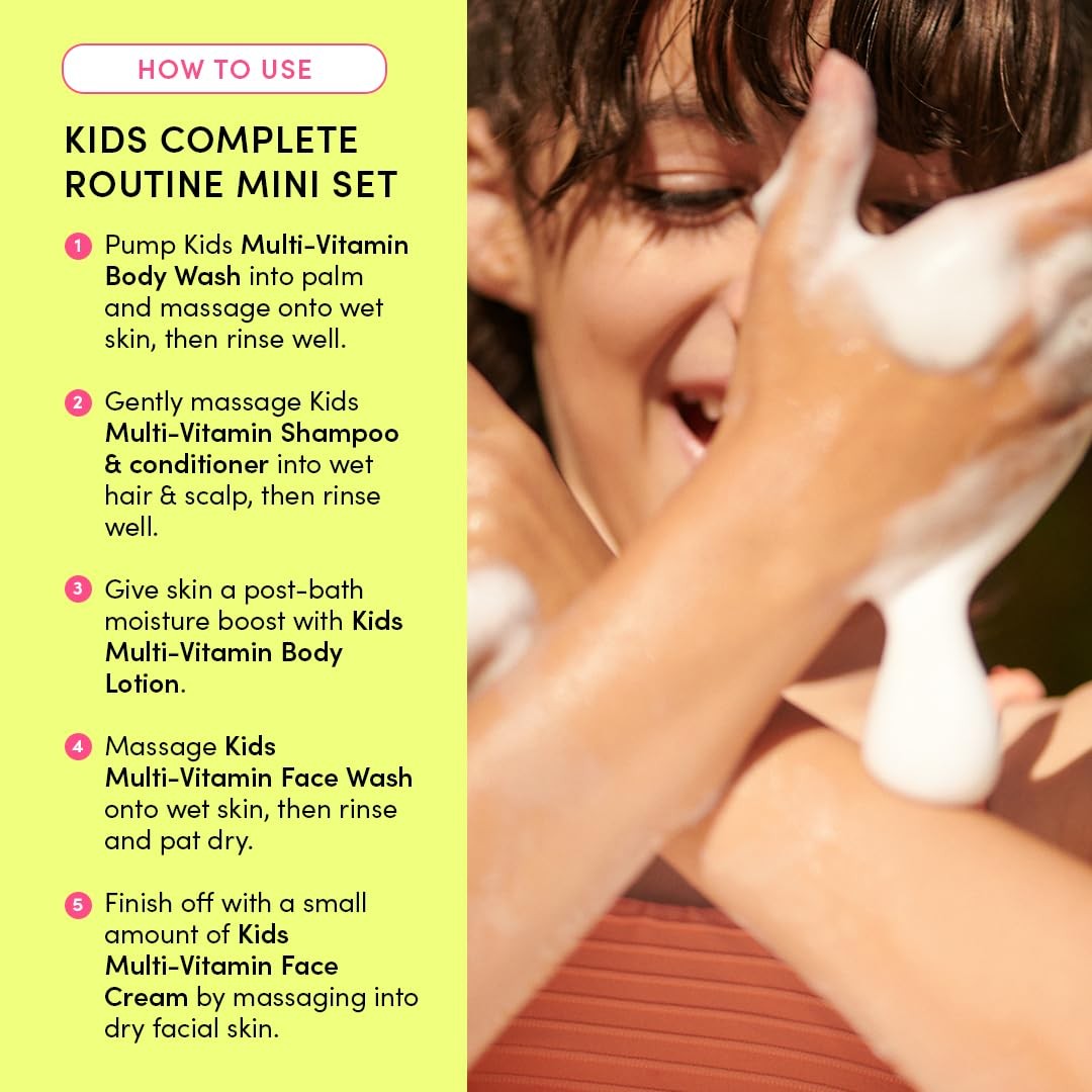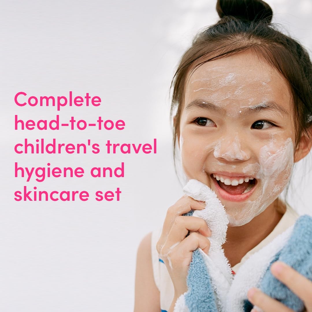Evereden Kids Travel Set: Clean & Vegan 5-Piece Skin Care Set for Kids | Multi-Vitamin Kids Skin Care Set w/t Body Wash, Lotion, Face Wash, Cream, Shampoo & Conditioner | Stocking Stuffers for Kids