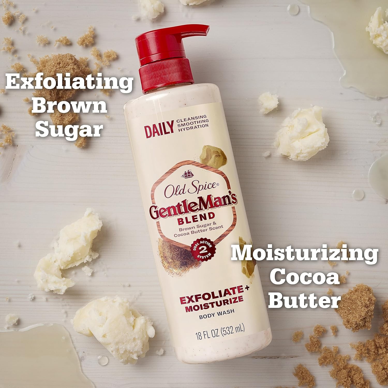• Old Spice Body Wash GentleMan's Blend Exfoliating for Men, 24/7 Moisturization, Gentle on Skin, Brown Sugar & Cocoa Butter Scent, 18 fl oz (Pack of 4)