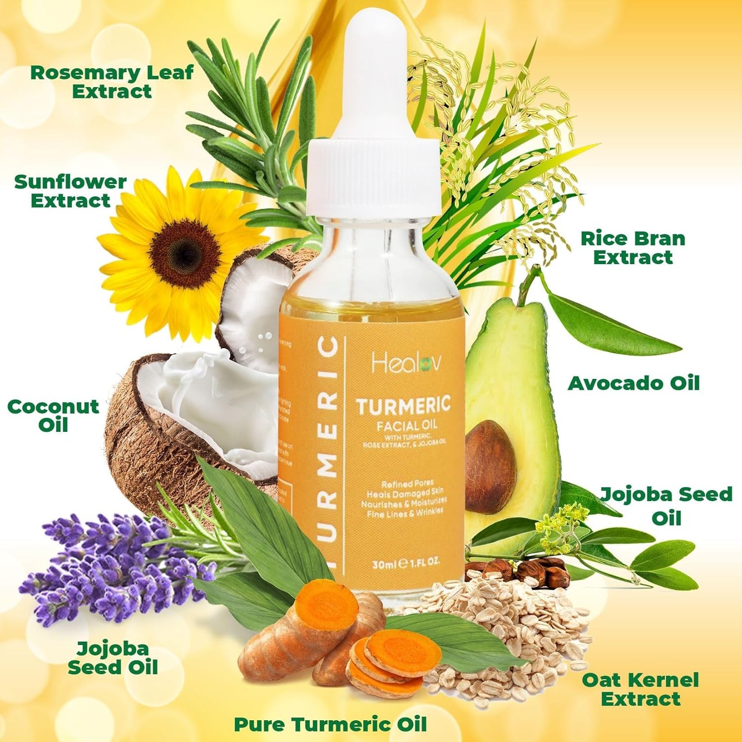 • QUALITY NATURAL INGREDIENTS: Made from the purest ingredients available, the all-natural turmeric face oil is as pure as they come. Made with natural ingredients, 100% Phthalate-free, with No additives, synthetics, or artificial fragrances.